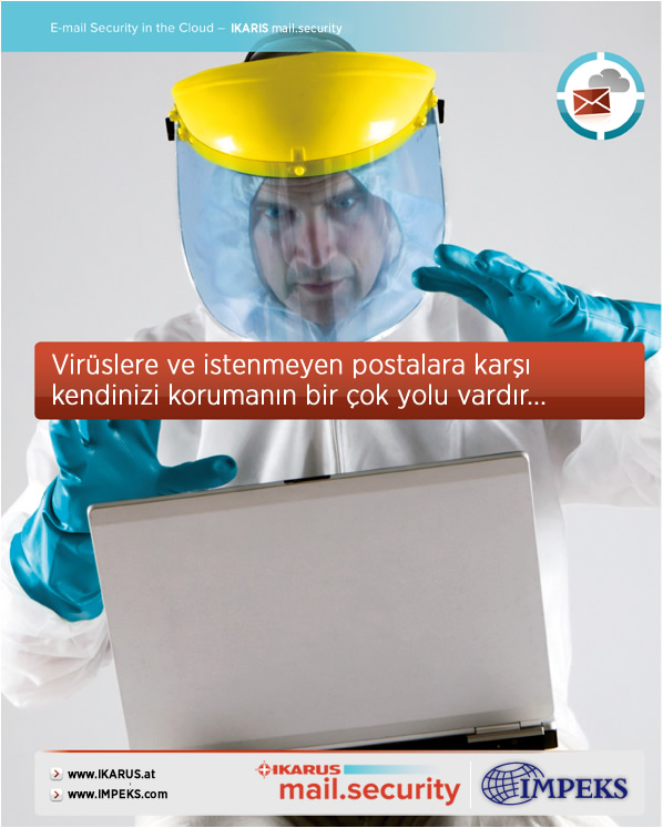 Herşey dahil IKARUS mail.security çözümü (daha önce: IKARUS my.mailwall) virüslere ve istenmeyen postalara karşı henüz ağa ulaşmadan önce etkili ve verimli bir koruma sunar. Güvenli bir ağ arayüzü tek tek yapılandırma ve izlemeye yönelik olasılıklar sağlamaktadır.