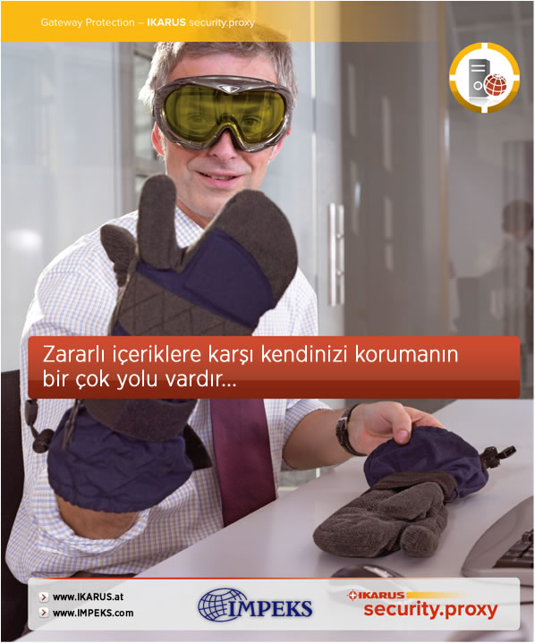 Ağ geçidi ve ağlar için herşey dahil bir virüs koruma olarak IKARUS security.proxy internetten gelmekte olan ve ileride gelebilecek tehditlerden korur. Ayrıca internet kullanımını da kontrol ederek iç tehlikelerden de koruma sağlar.