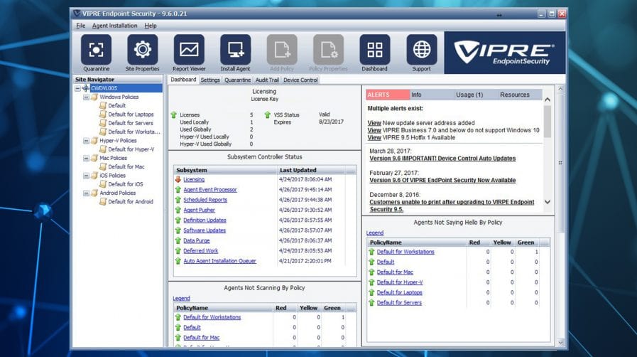 VIPRE AGENT (WINDOWS) OPERATING SYSTEMS