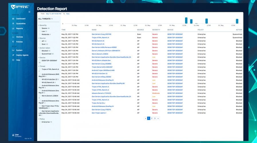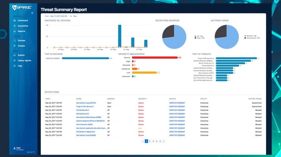 VIPRE'nin Gelişmiş Aktif Koruması, fidye yazılımlarını önlemeye yardımcı olmak için gerçek zamanlı davranış izleme, yapay zeka ve dünyanın en büyük tehdit istihbarat bulutlarından birini kullanır.